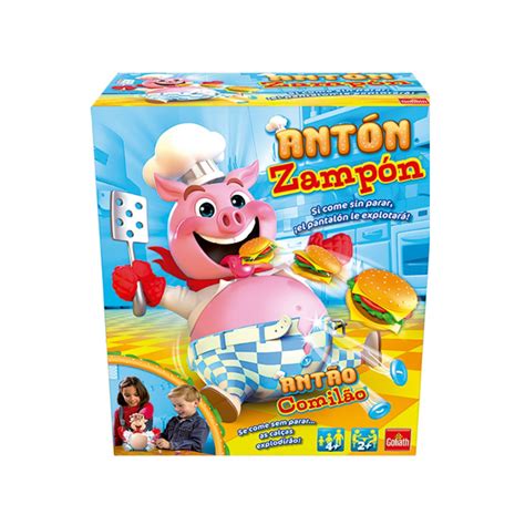 Antón Zampón de Goliath es un juguete infantil de puzzles en el cual los peques pueden pasarlo en grande. Antón es un cerdito glotón que siempre tiene hambre; han de alimentar a Antón con sus hamburguesas favoritas, pero con cuidado, porque ya no puede más y su pantalón está a punto de explotar.