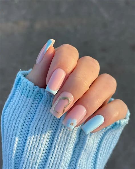 - Estilo Minimalista: Mezcla azul pastel con blanco o negro, añadiendo líneas o aplicándolo solo en el borde de las uñas para un mayor contraste.