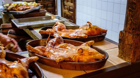 En Segovia se puede disfrutar de un buen cochinillo asado en casi todos sus restaurantes. Dicen que el cochinillo cuando se ha cocinado perfectamente se puede partir con un plato, sin tener que utilizar un chuchillo o cualquier otro utensilio cortante.