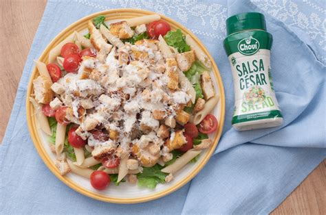 Una variante de la clásica ensalada César, con la adición de pasta que combina a la perfección con el resto de ingredientes.