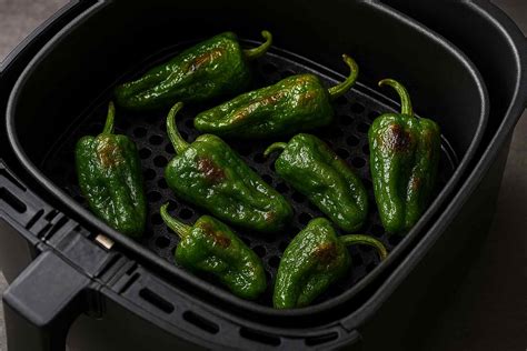 - Una vez listos, retira los pimientos de la freidora de aire y sírvelos inmediatamente. Puedes disfrutar de estos pimientos fritos como aperitivo, acompañamiento de carnes o como ingrediente para una ensalada fresca.