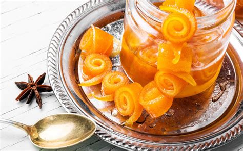- Antes de que el agua y el azúcar se disuelvan, unas cáscaras de limón y naranja a la cocción hasta conseguir el espesor adecuado.