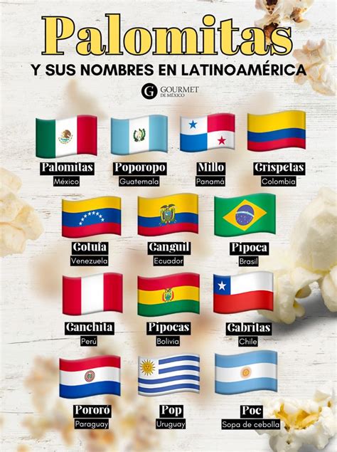 A continuación, se presenta una lista de los nombres más comunes para este delicioso snack en diferentes países: