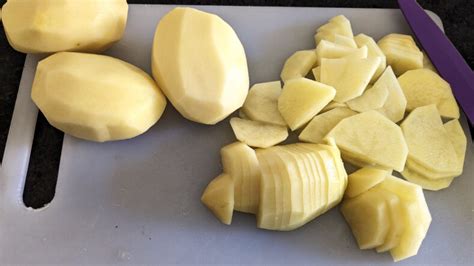 Lo primero que debes hacer es lavar y pelar las patatas. En primer lugar, pelamos, lavamos y picamos las patatas y la cebolla. Seguidamente debes realizar un corte por la mitad de cada una de ellas, empezando por el lado más largo. Repite el proceso para obtener tiras gruesas de patata, y luego realiza cortes horizontales para obtener pedazos pequeños no tan gruesos. También puedes usar un pelador ara ir pelando la patata en capas finas si te gusta más esta textura.