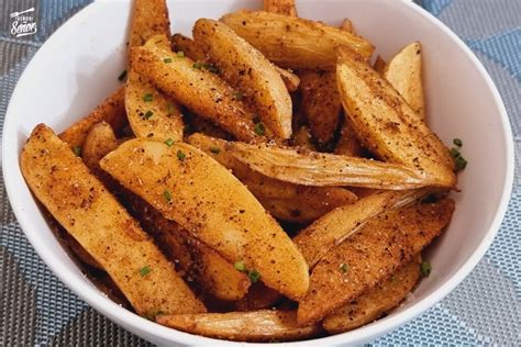 - Lavar y secar las patatas. Cortar en gajos gruesos.