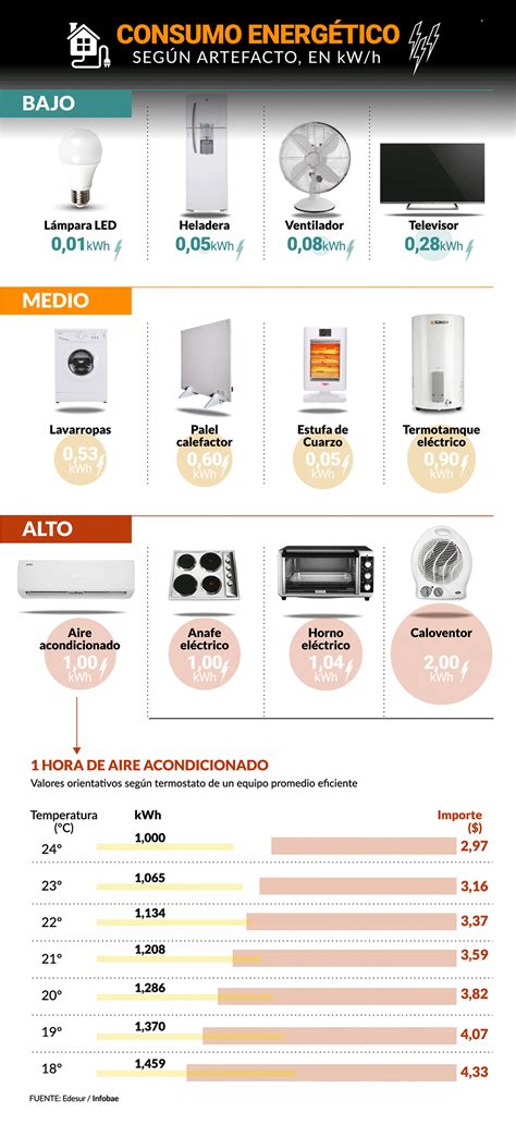 | Uso | Consumo de Energía (vatios por hora) |