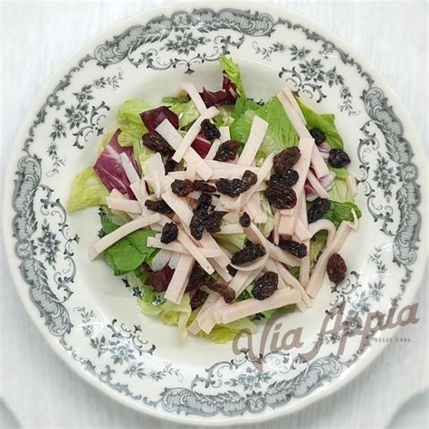 | Ensalada con Vinagreta Clásica | Pechuga de pavo, lechuga, nueces, tomate cherry, cebolla | Aceite, zumo de limón, vinagre balsámico | Sencilla y equilibrada |