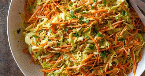 La ensalada de col y zanahoria permite muchas variaciones, tanto en las verduras como en la salsa. Sustituyendo parte de la col blanca por col lombarda o morada, se consigue un aspecto especialmente vistoso. La cebolla suele estar presente, o no, a gusto de los comensales.