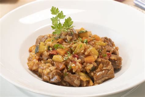 Arroz con carne y verduras, una opción nutritiva y deliciosa.