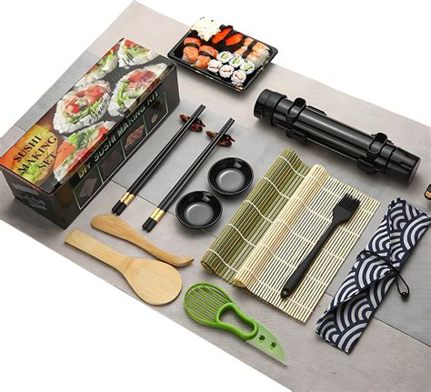 - Kit básico: Este kit generalmente incluye todo lo necesario: un estuche de bambú para enrollar, cuchillos de calidad, y herramientas para servir. Además, puede contener ingredientes como alga nori y arroz especial para sushi.