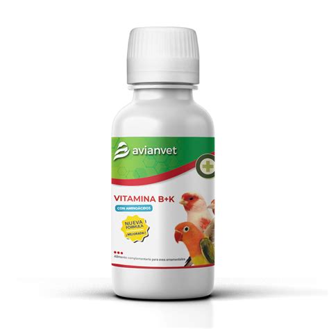 Vitamin B+K Avianvet es un alimento complementario para aves rico en vitaminas del grupo B y vitamina K. Aporta todas las vitaminas y minerales necesarios para la recuperación de la salud después de tratamientos o períodos de enfermedad y/o recuperación. Se recomienda su uso en pájaros después de tratamientos con antibióticos y sulfonamidas, o en especies que necesiten un aporte extraordinario de vitamina K3.