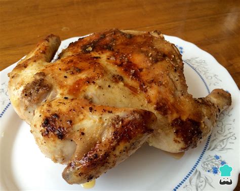 Si tu horno no dispone de pincho giratorio, podrás asar el pollo a 175 ºC, calor arriba y abajo, dándole la vuelta cada 15 minutos y regandolo con el caldo que vaya soltando.