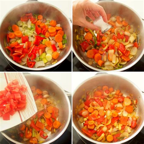 Cocer sin más los ingredientes es un poco triste. En las cremas de verduras lo habitual es partir de un sofrito ligero de cebolla y ajo, también con puerro y/o apio.