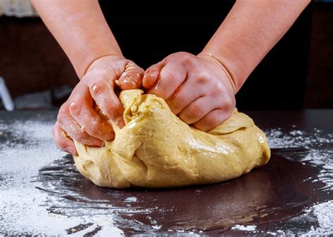 - Recupera la masa y voltéala en la encimera espolvoreada con harina.