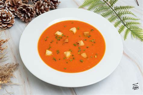 La sopa queda con una textura cremosa que invita a disfrutar, siendo estupenda si la sirves coronada con unos picatostes o con una rebanada de pan tostado, unas gotas de aceite de oliva virgen extra y unas hojas de tomillo, por ejemplo. El sabor rico en umami del tomate, tan presente en esta deliciosa sopa, es estupendo para comenzar una comida.