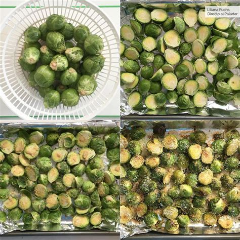 - Lavar bien las coles de Bruselas, desechar las hojas más externas y cortar en dos mitades.