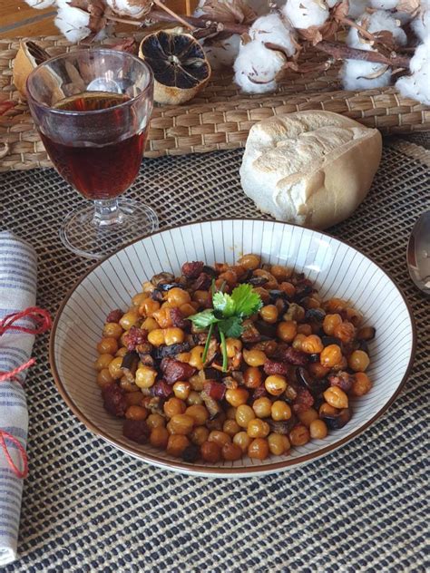 Garbanzos crujientes con chorizo y berenjena