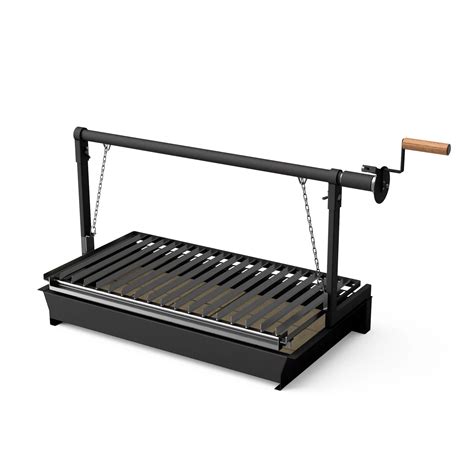 | Barbacoa con sistema de cadenas para elevación de parrilla | Sistema de Cadenas, Ruedas, Apoyos Laterales como Mesas | Comodidad en el cocinado, Fácil Movilidad, Funcionalidad Adicional |