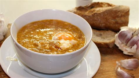 Preparación de la sopa de ajo y cebolla con huevo poché