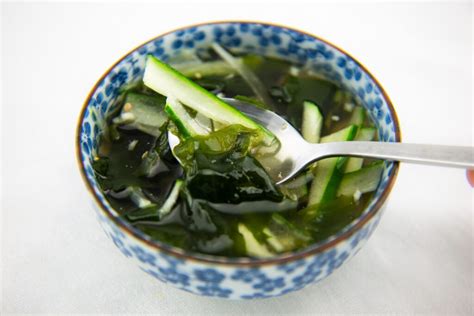 Si usas agua fría la puedes tomar directamente, o se puede dejar enfriando en la nevera hasta el momento de servir, ajustando el punto de sal y añadiendo cubitos de hielo, una práctica habitual coreana cuando hace mucho calor. Otra versión muy popular, como la de la fotografía que encabeza este texto, añade alga wakame rehidratada, y a veces se ven versiones con zanahoria cortada también en juliana, discos muy finos de rabanitos o cebolleta.