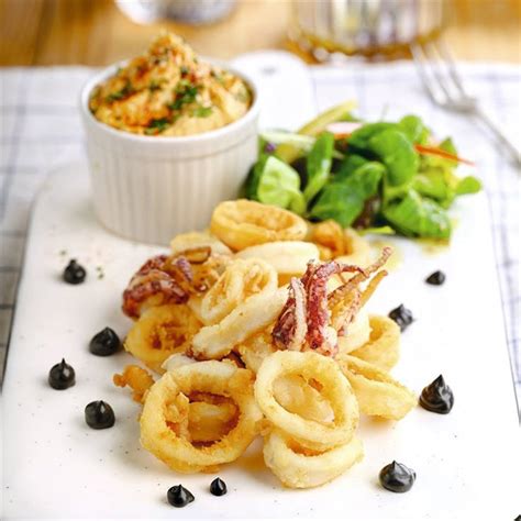 Presentes tanto en cualquier bar del viejo casco antiguo o en espacios más selectos, donde la vieja fórmula del rebozado entre pan y pan se reinventa emparedándole entre pan negro con tinta de calamar o en crujiente pan cristal, y a los calamares se les aplica la fina tempura y se adorna con un toque de alioli.