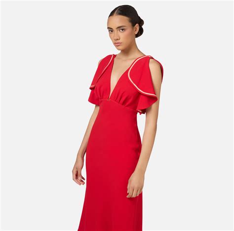 - Vestido midi entallado en la cintura, con escote palabra de honor. Vestido largo y ceñido de crepe que realza la silueta de forma elegante y a la vez con un toque sensual. Presenta un favorecedor escote corazón con detalles cut-out y una espalda descubierta.